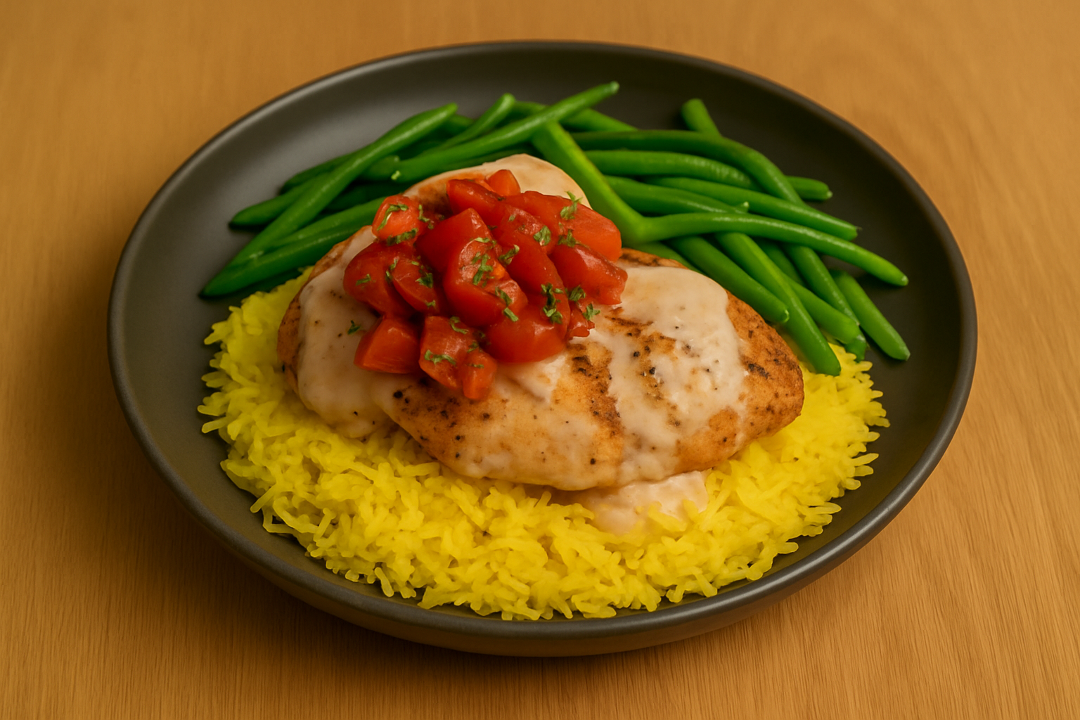 Served with turmeric rice, mixed vegetables, pico de gallo and supreme sauce